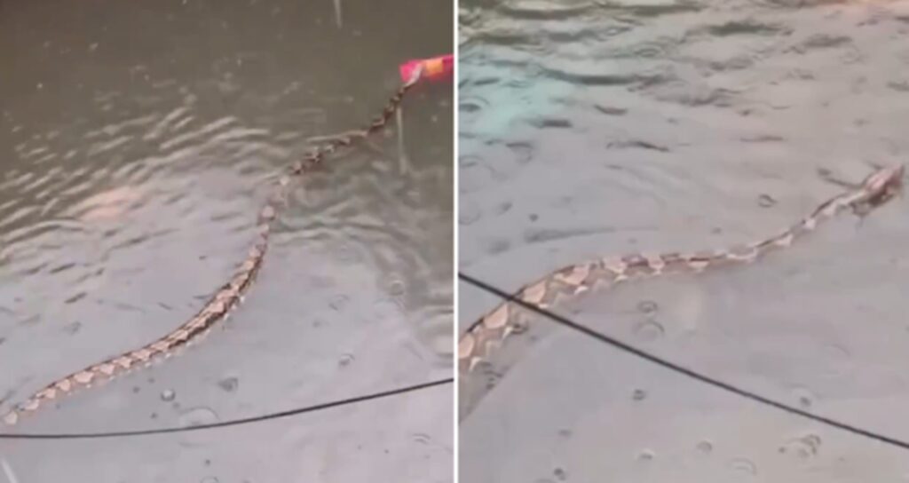 É #FATO: Pítons gigantes são vistas nadando em ruas alagadas de Bali, na Indonésia; assista